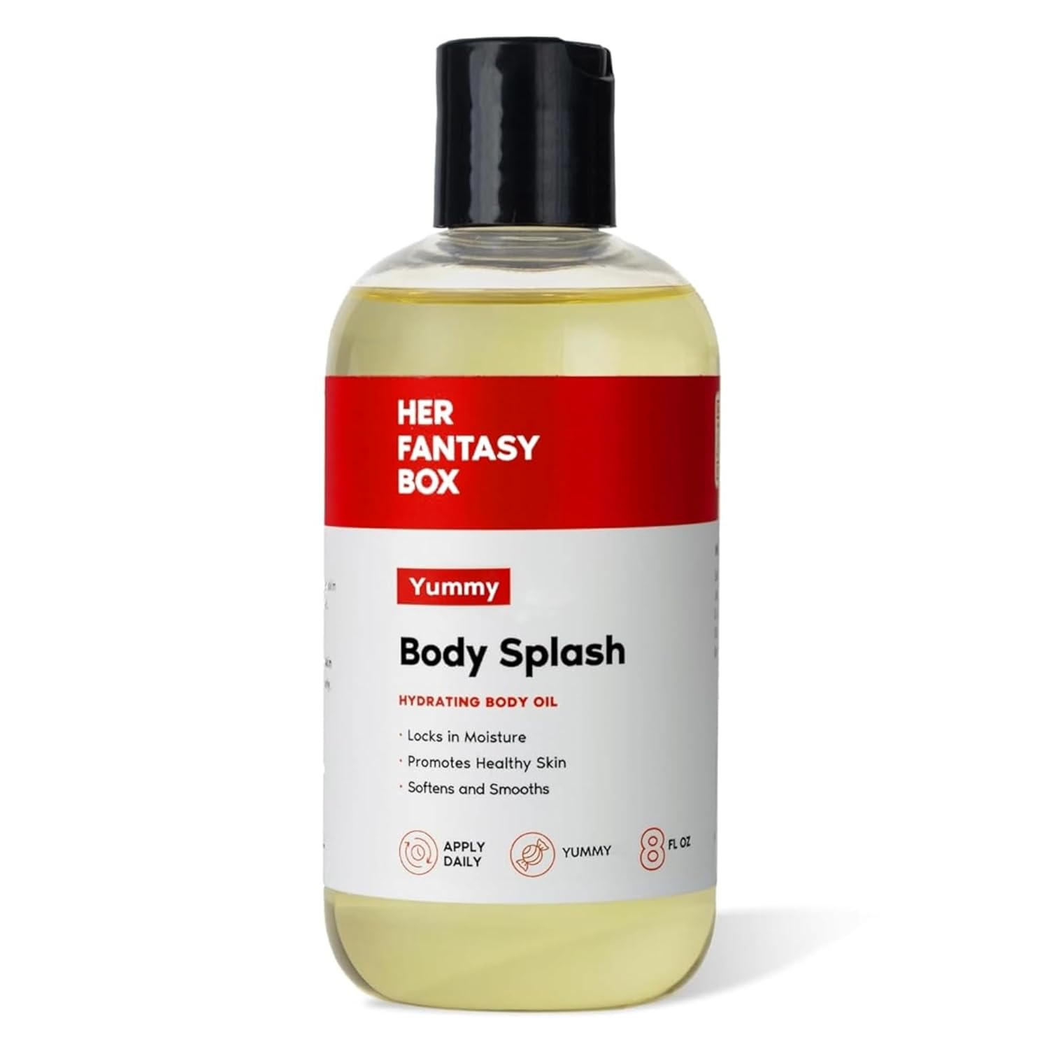 Yummy Body Splash — a lightweight body oil designed to help moisturize, soften, and smooth the feel of your skin. Blended with skin-friendly oils like safflower, jojoba, and grapeseed, it absorbs quickly and leaves skin with a soft, touchable finish — no greasy residue - Smells like: a juicy burst of fruity candy